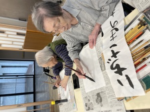 「お魚もお肉も、どちらも好き」と言いながら、うっかり続けて書いたら「魚肉」になっちゃったご利用者様もいらっしゃって、楽しい書道クラブとなりました。
