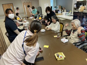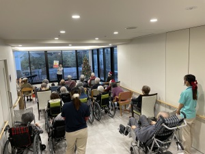 「あわてんぼうのサンタクロース」を元気いっぱい歌ってくれて、手拍子や、体でリズムを取ったり、口ずさむご利用者様もいました。