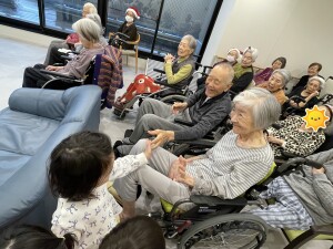 12月25日、お隣の保育園の園児たちからクリスマスソングのプレゼントがありました♪