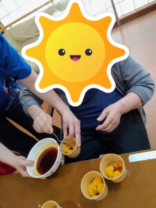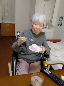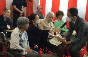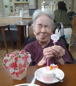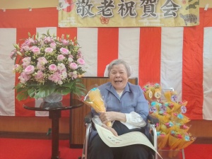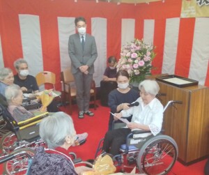 敬老祝賀会はフロアごとの実施となりました。花束を手渡していただく時に涙ぐむご家族様もいらしたり、温かい式になりました。