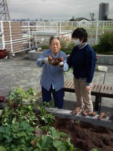 恒例の屋上菜園の収穫です。焼き芋、スイートポテト、みんなで食べましょう。