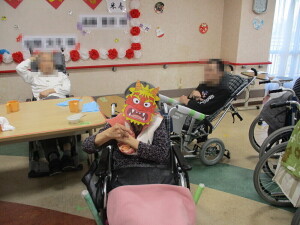 ご自身でもお面をかぶっていただいたりと、